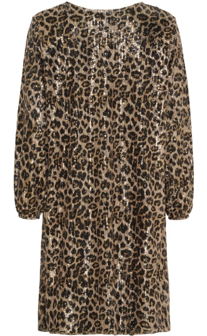 Denne går til knæet, har ballonærmer og så er den i et smukt leopard print.
