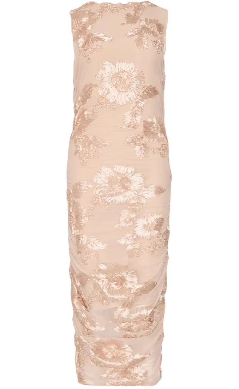 Kjolen er ærmeløs og har et tætsiddende fit.