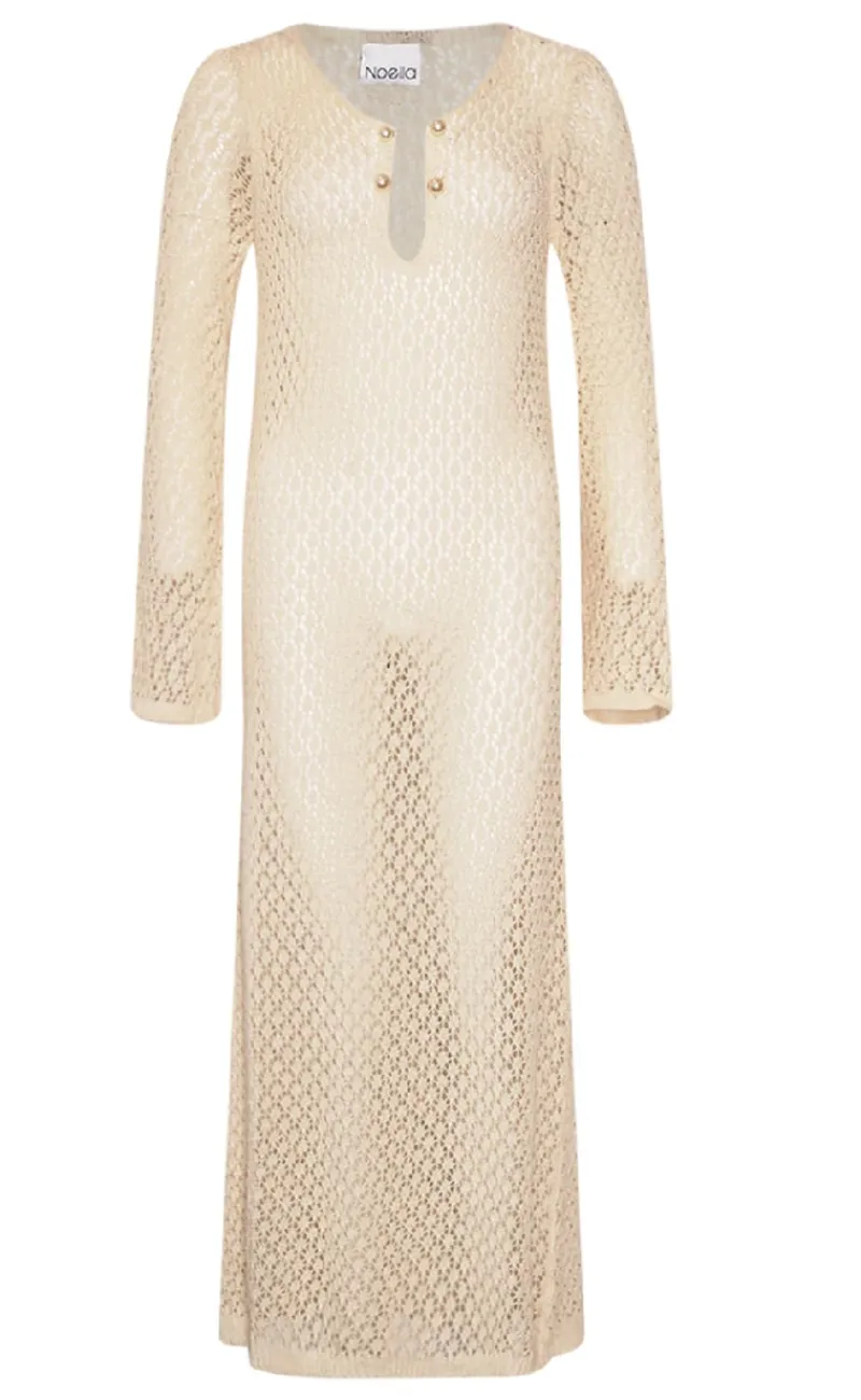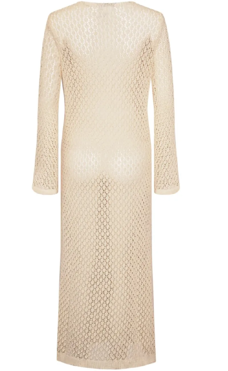 Kjolen har en maxi længde og er fremstillet i en let transparent kvalitet.