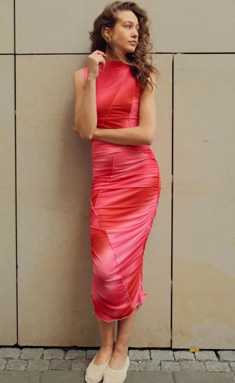 Smuk kjole i mesh fra Noella i smukt print og med stræk.