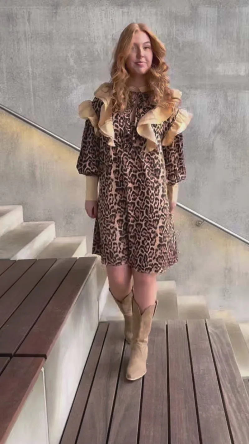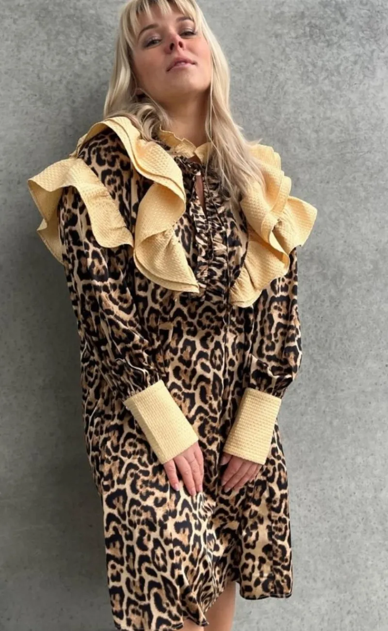 Pæn kjole i et leopard print.