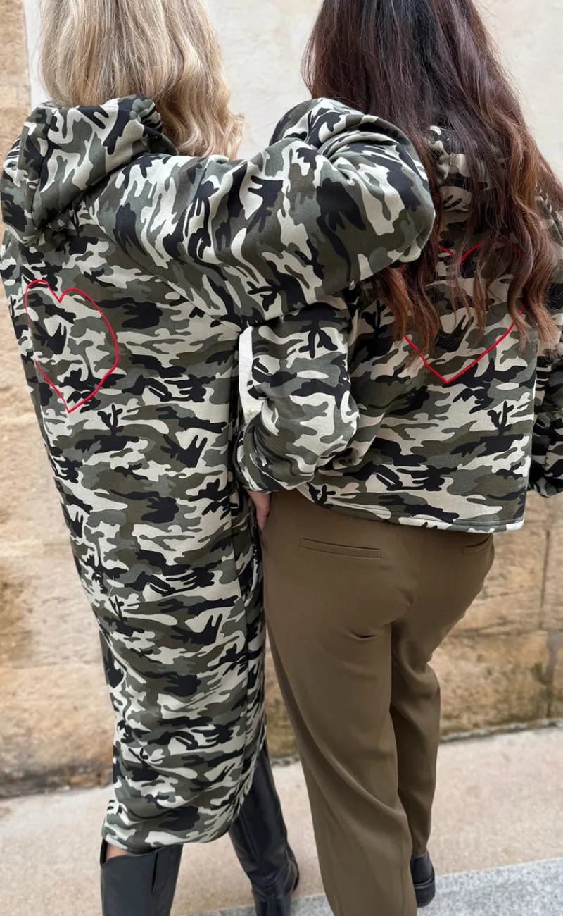Flot hoodie inspireret kjole fra Liberte i en camo farve, med et rødt hjerte bagtil.