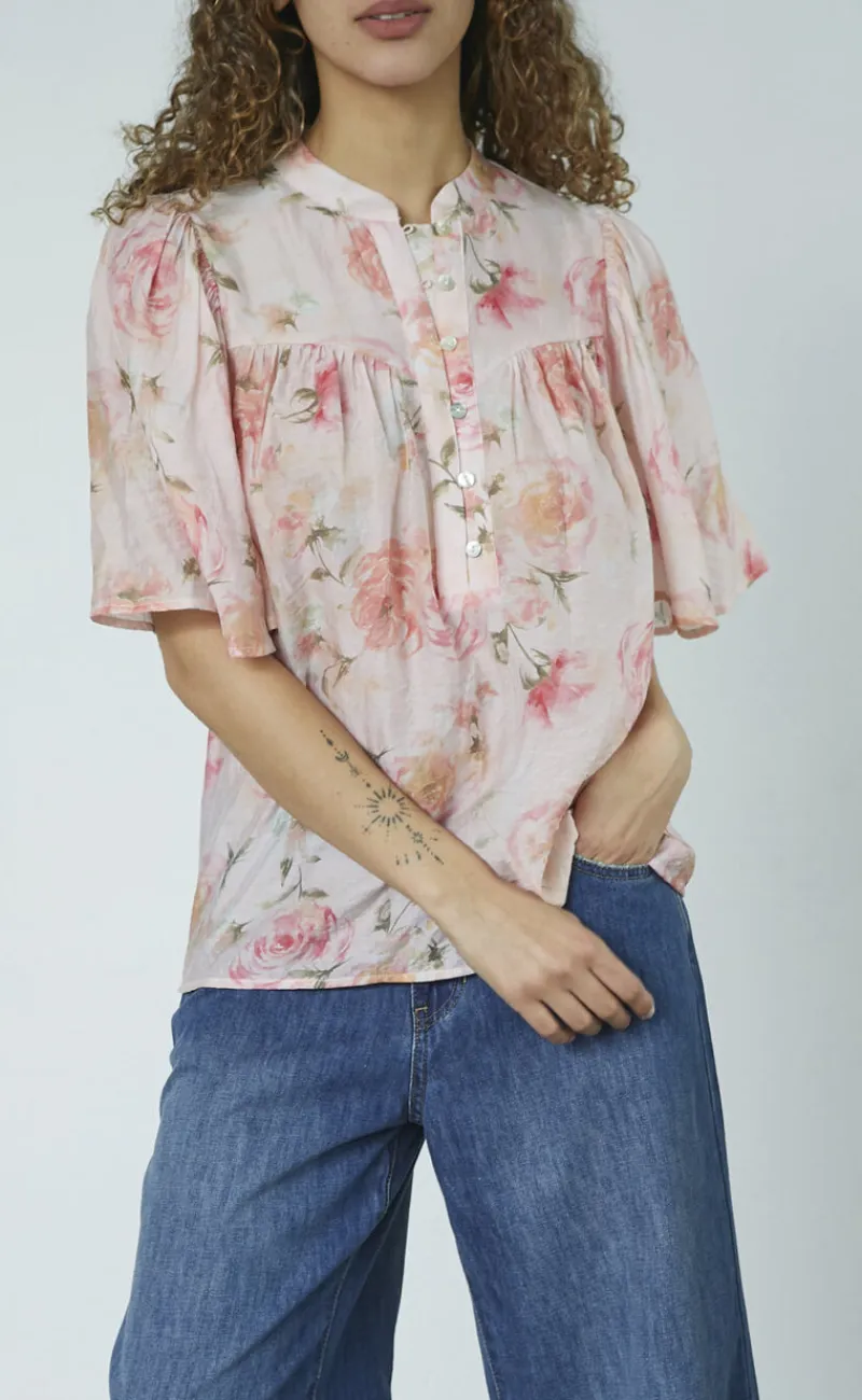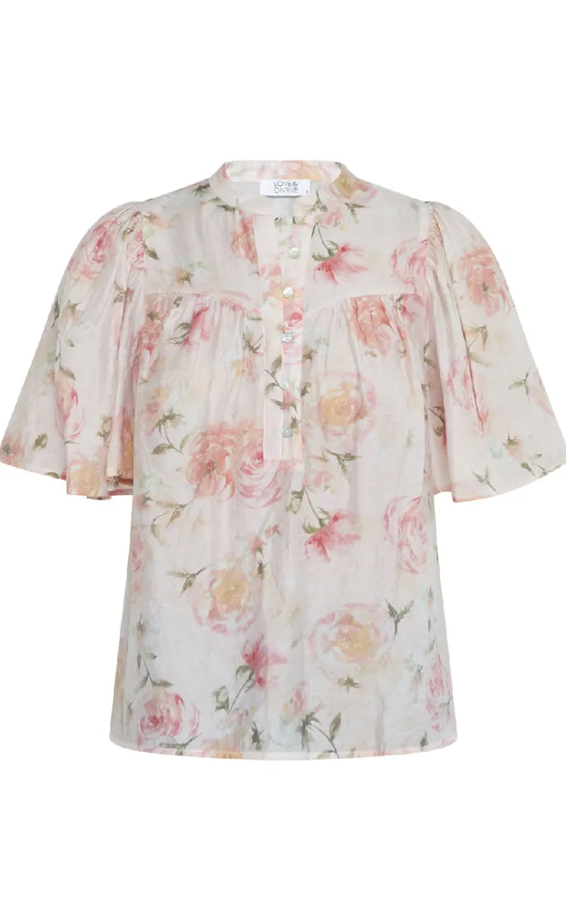 Sød bluse fra Love & Divine i et lyserødt blomsterprint.