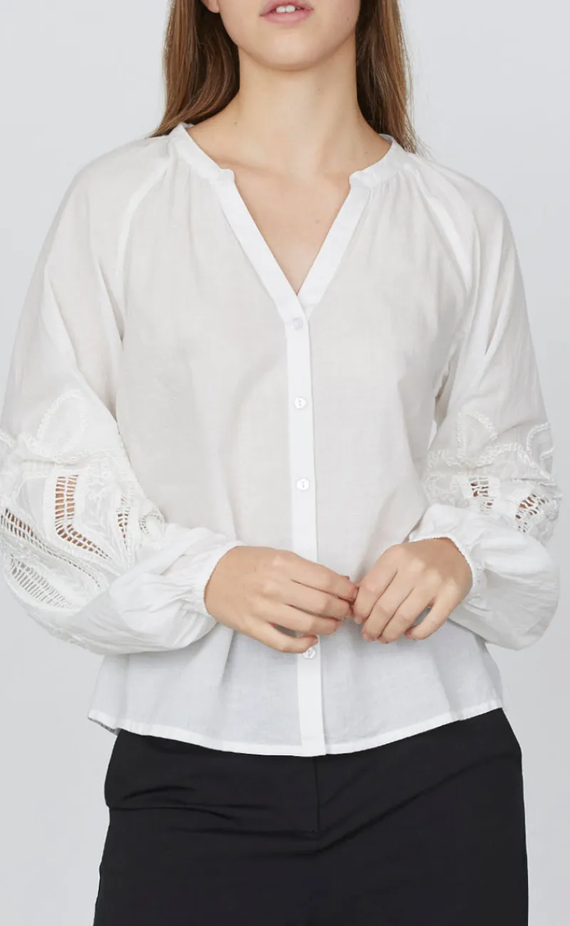 Denne skjorte fra Love & Divine kommer i en smuk hvid farve, med feminine detaljer.