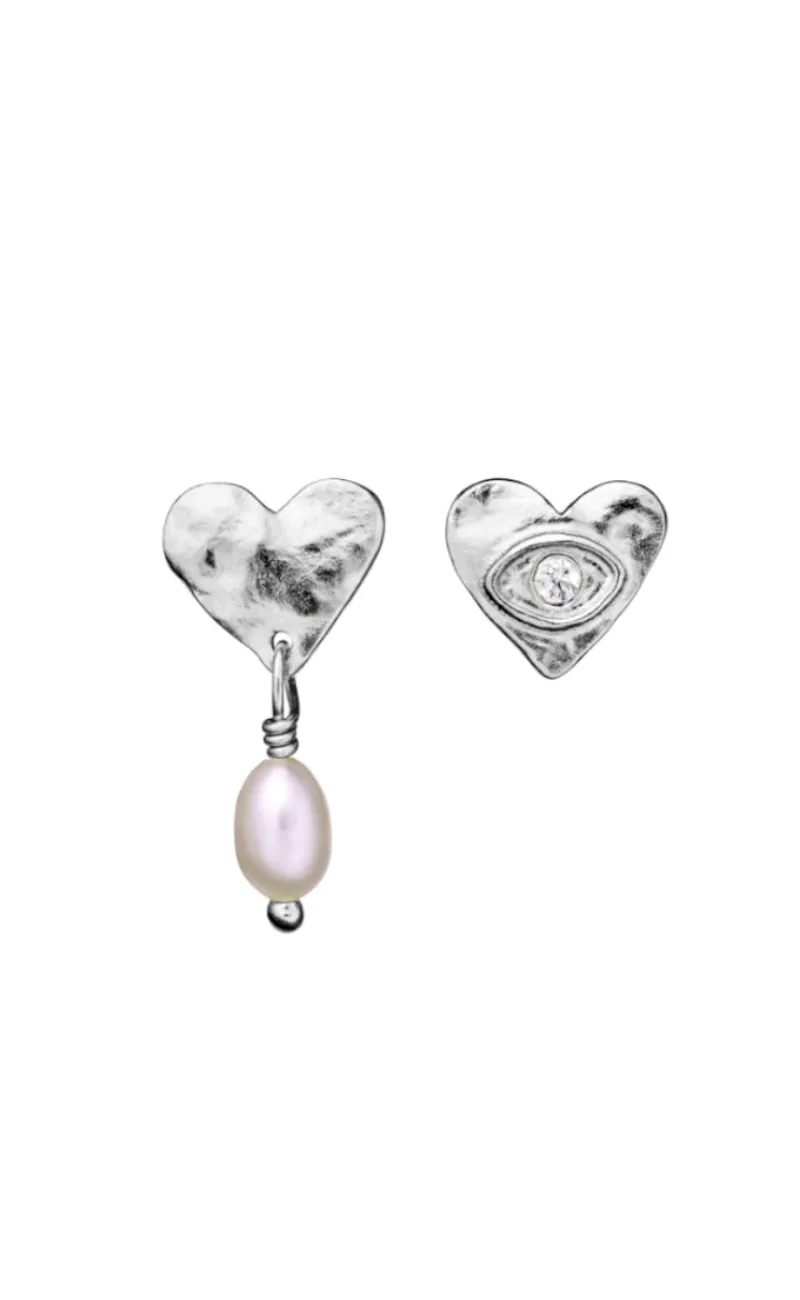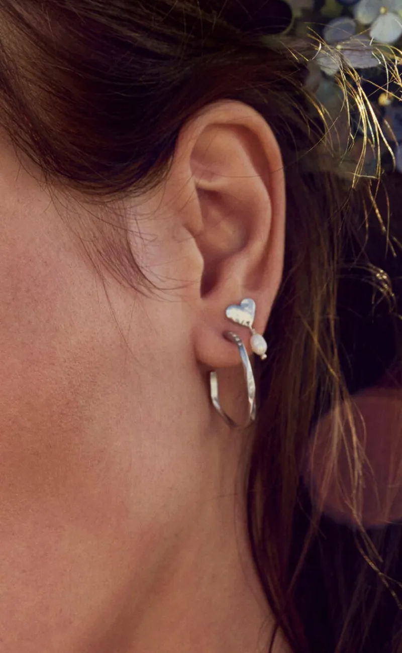 Smukke Maanesten øreringe i sølv. Formet som hjerter.