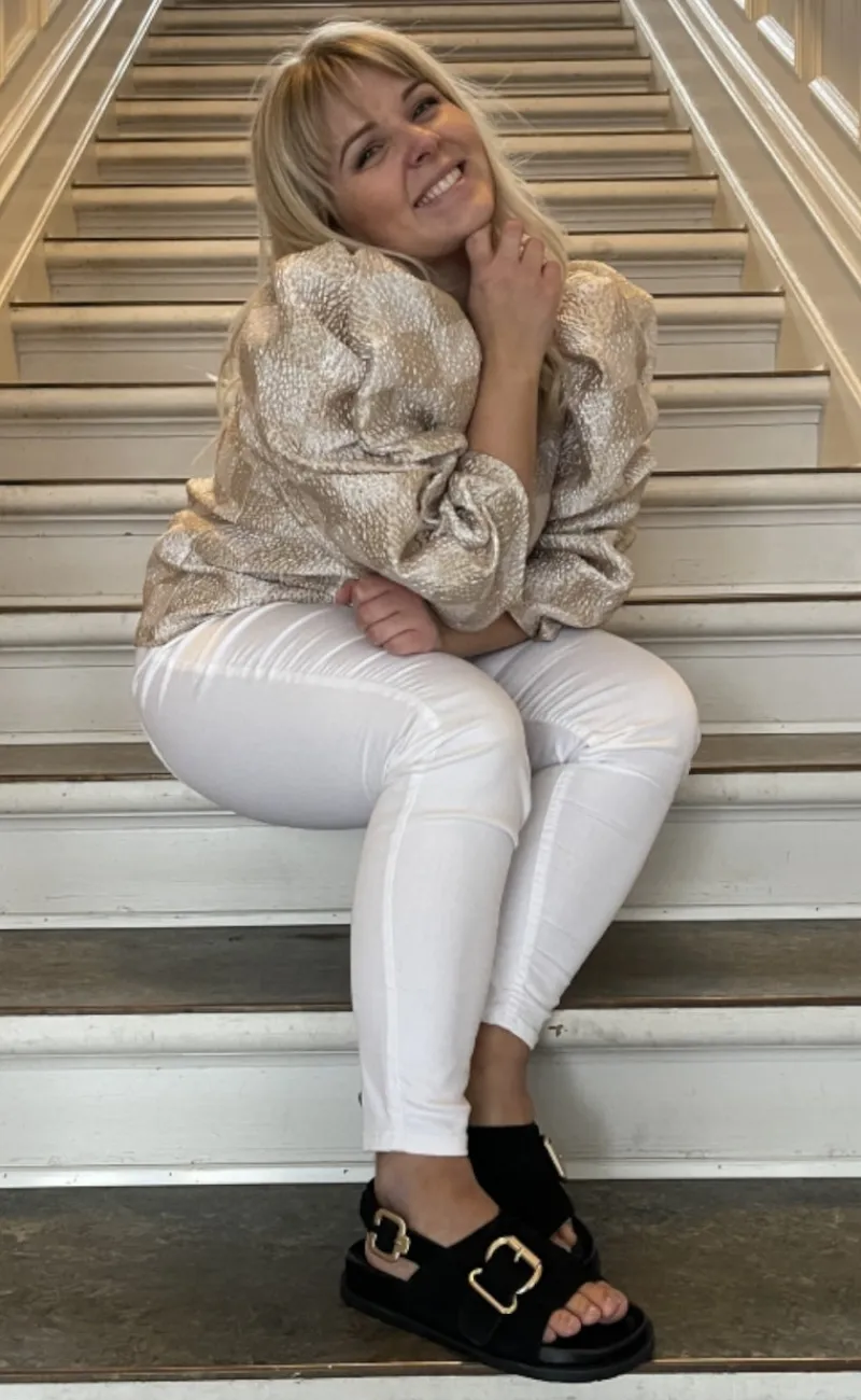Sandalerne er syet i ruskind og har en rem over foden som kan tilpasset.