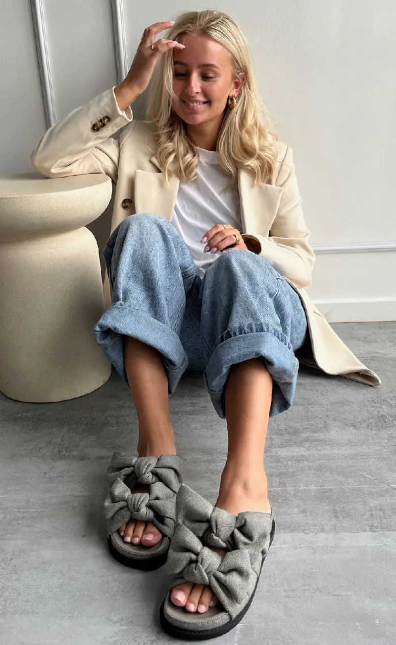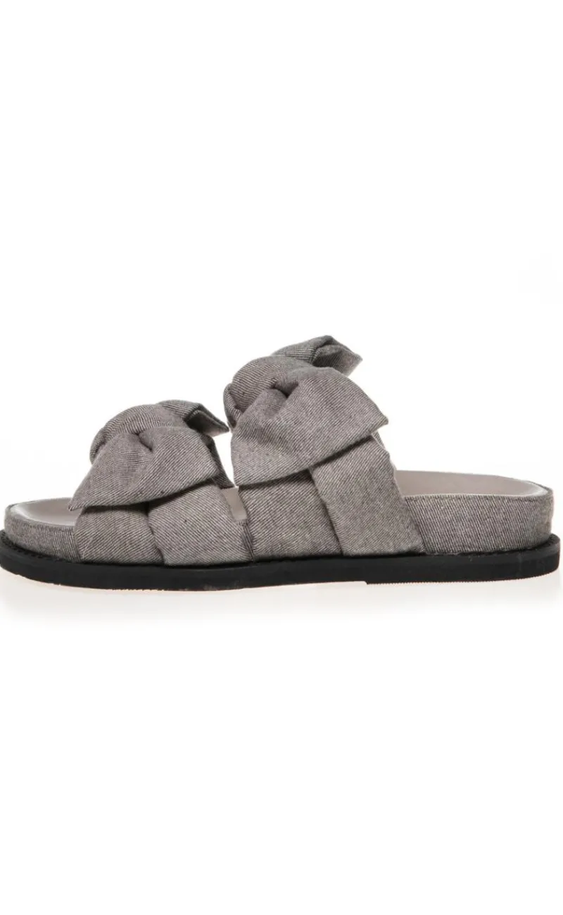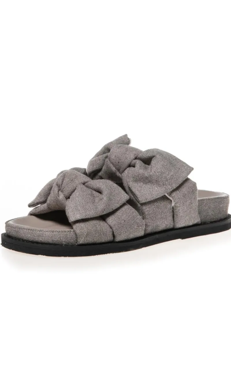 Disse sandaler er i grå denim og har 2 sløjfer.