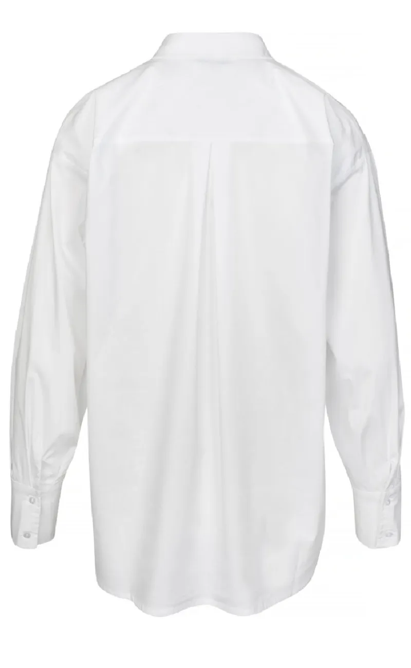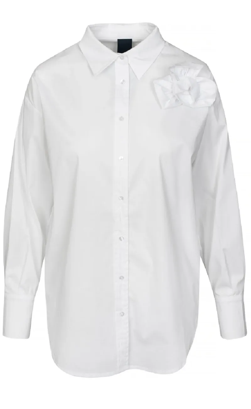 Cool skjorte fra Luxzuz i hvid med en smuk aftagelig blomst ved skulderen.