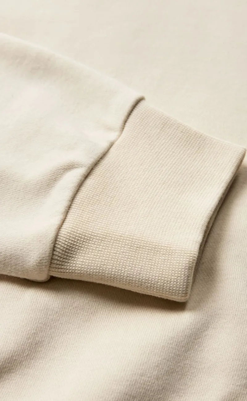 Denne sweatshirt er beige, og har det velkendte logo på brystet.