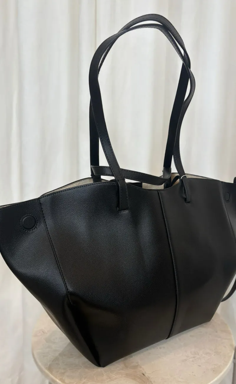 Tasken har både lange og korte stropper, som gør det muligt at bære tasken enten over skulderen eller i hånden. Tasken har et stort rum med god plads til både computer og andre ting.