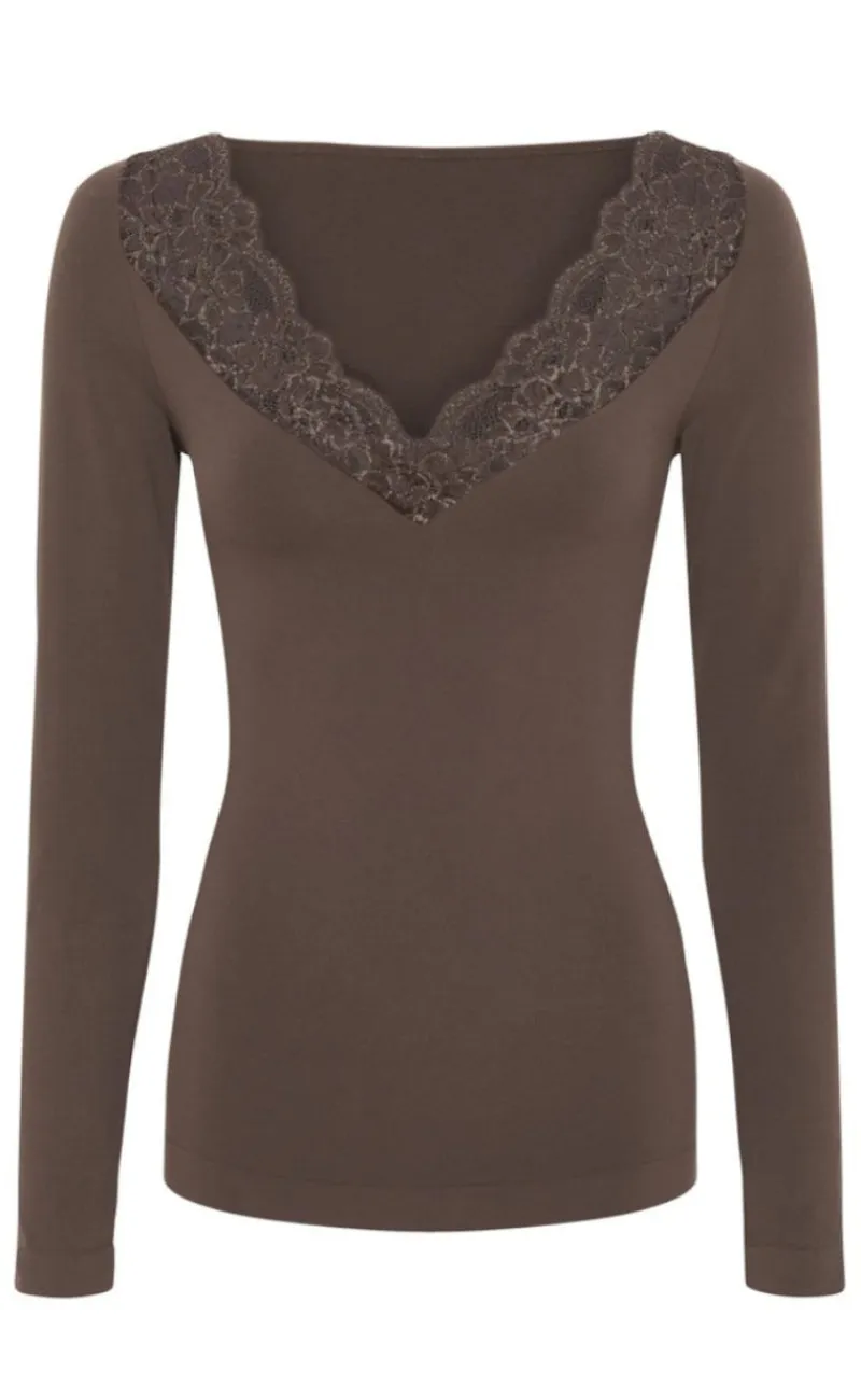 Basic langærmet bluse fra Tim & Simonsen, som har blonder ved halsudskæringen.