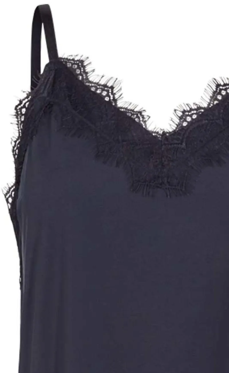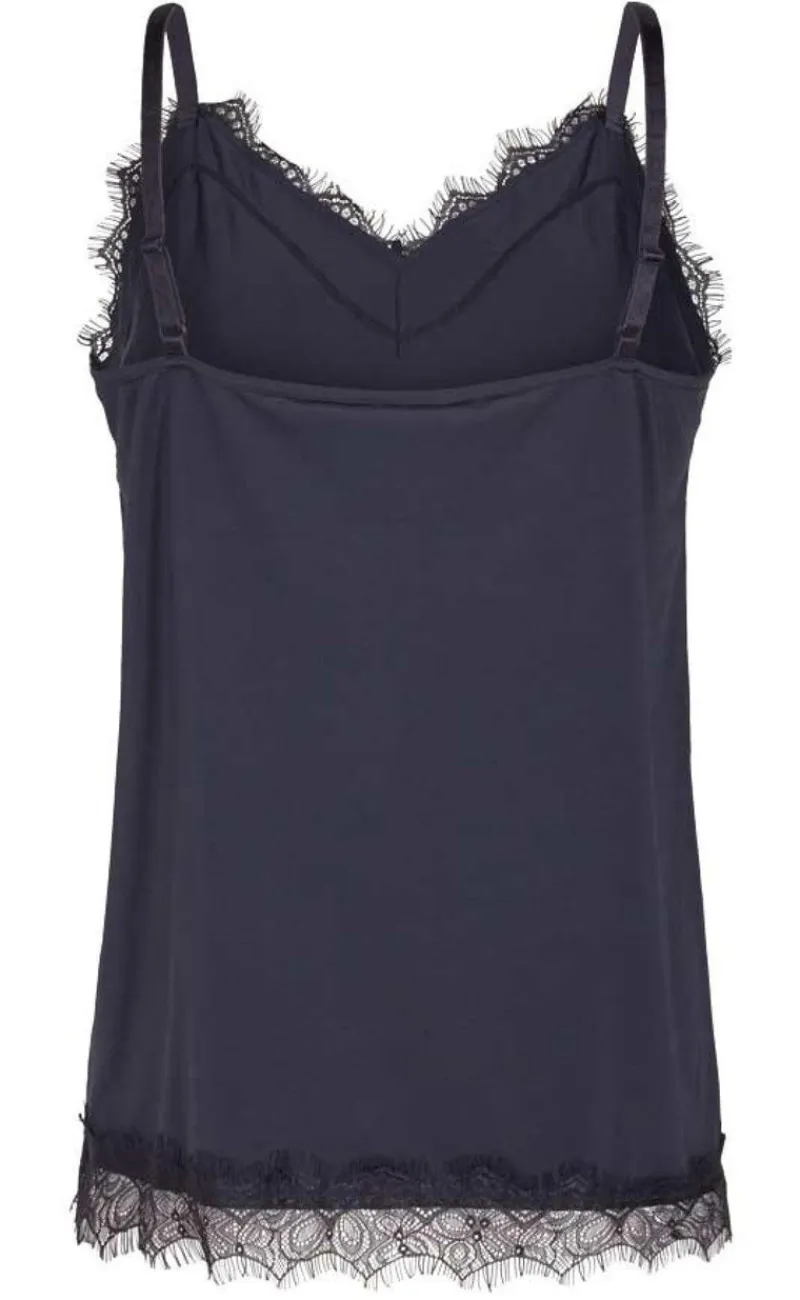 Fin top fra Freequent med tynde stropper og smukke blondedetaljer, som gør toppen meget elegant.