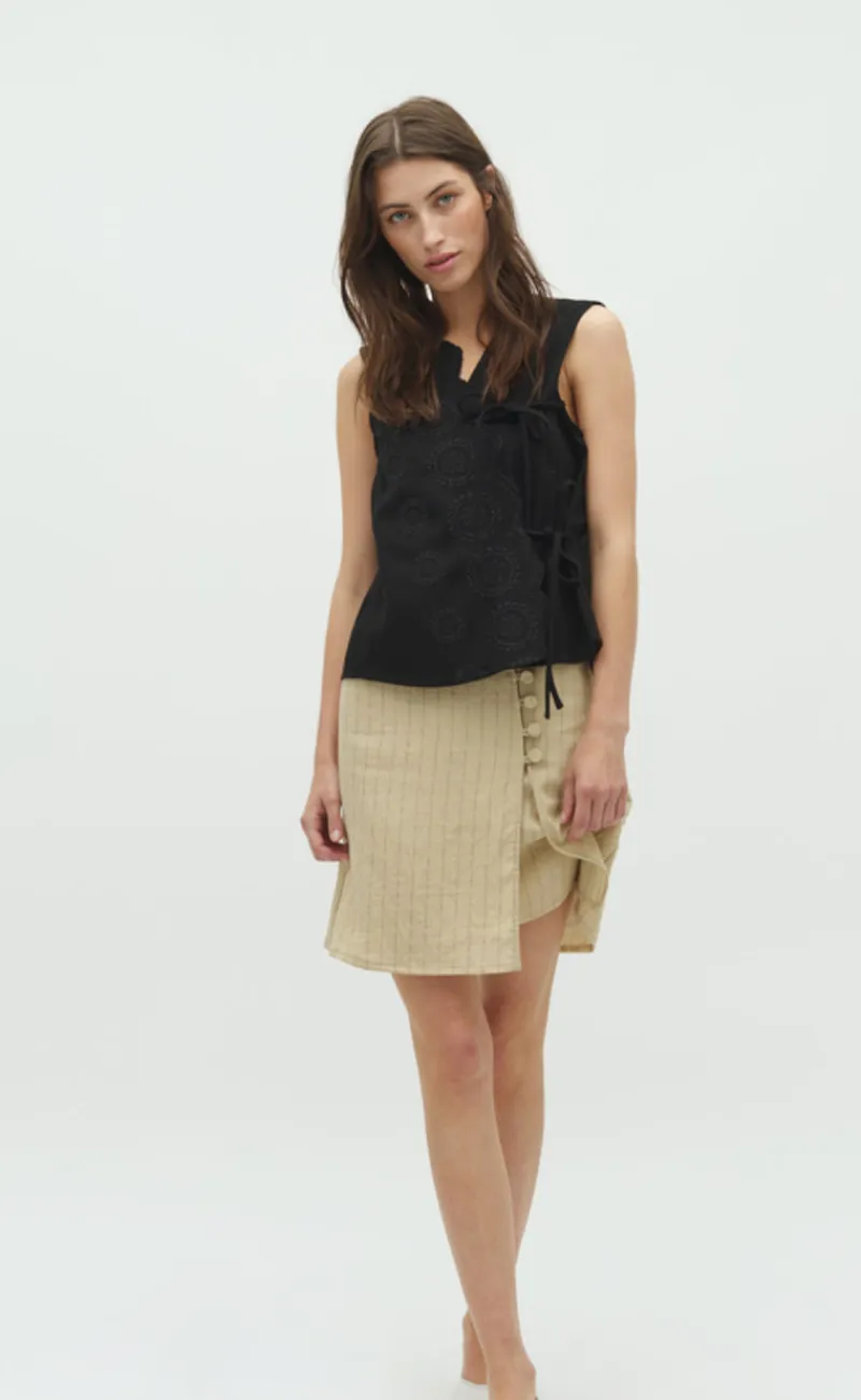 Toppen har ingen ærmer med fine detaljer.