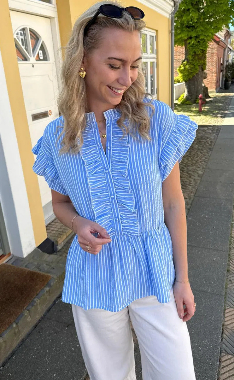 Nydelig top fra INA Copenhagen med hvide og lyseblå striber.