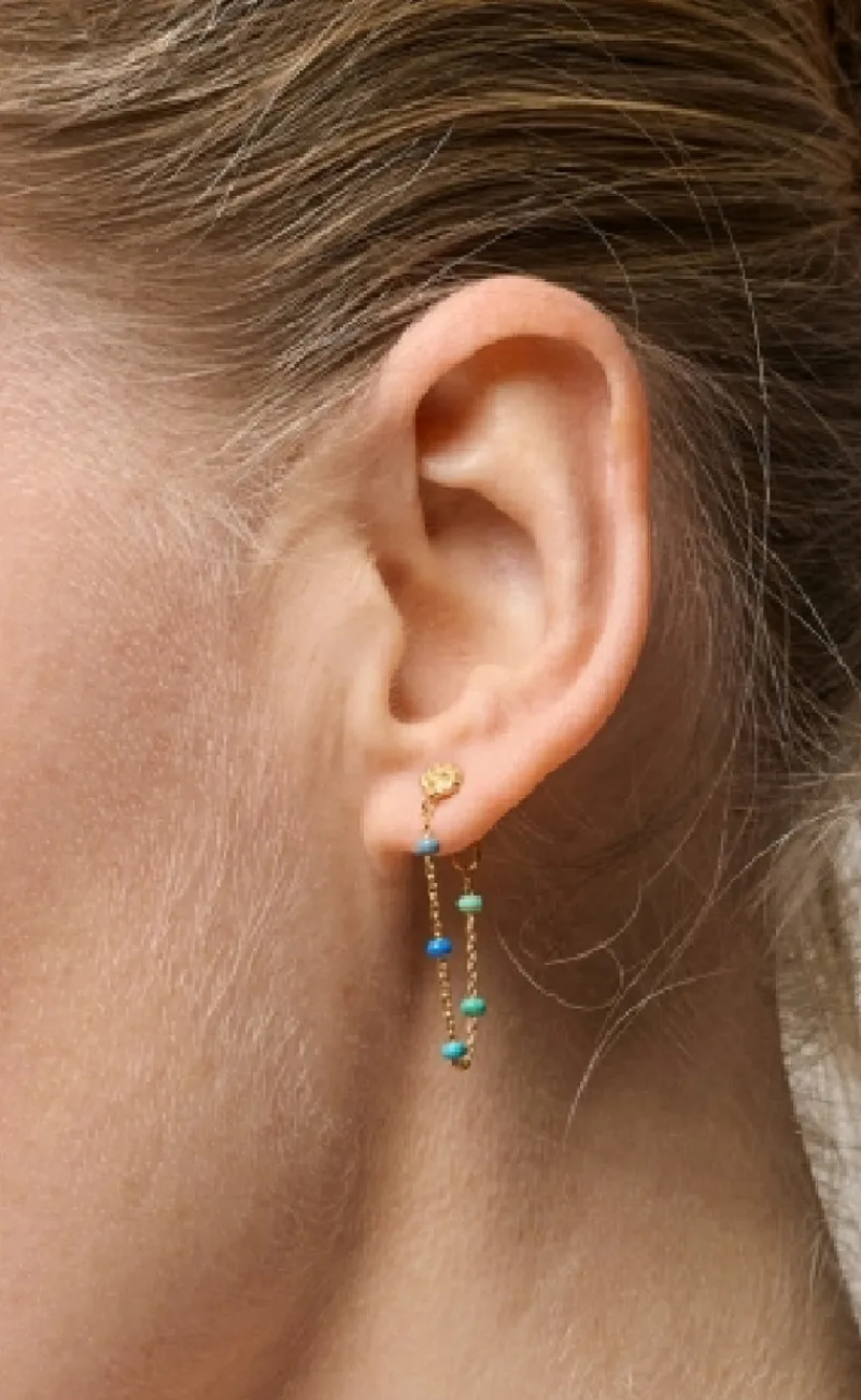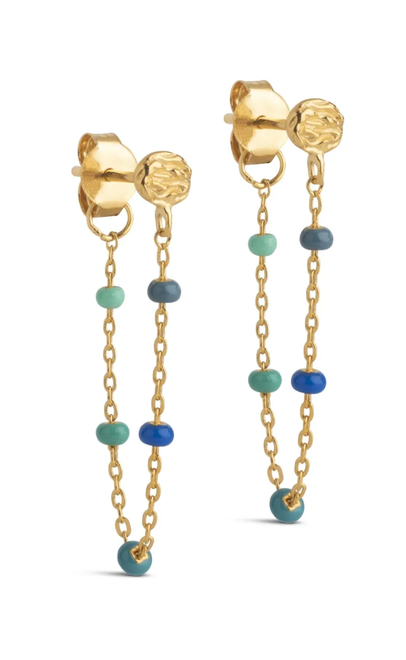 Smukke øreringe fra Enamel i guld med blå sten.