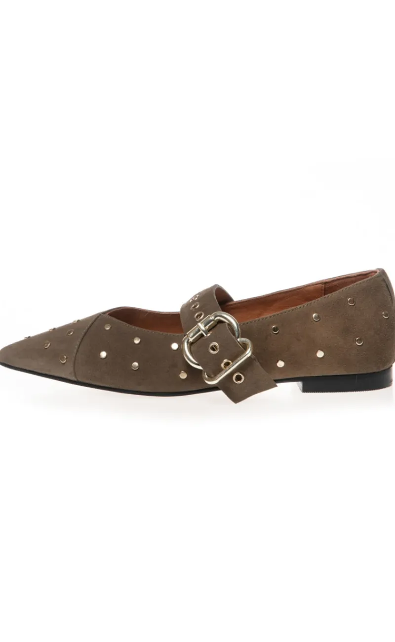 Flotte ballerinaer fra Coepnhagen Shoes i army grøn, med mange fine detaljer.