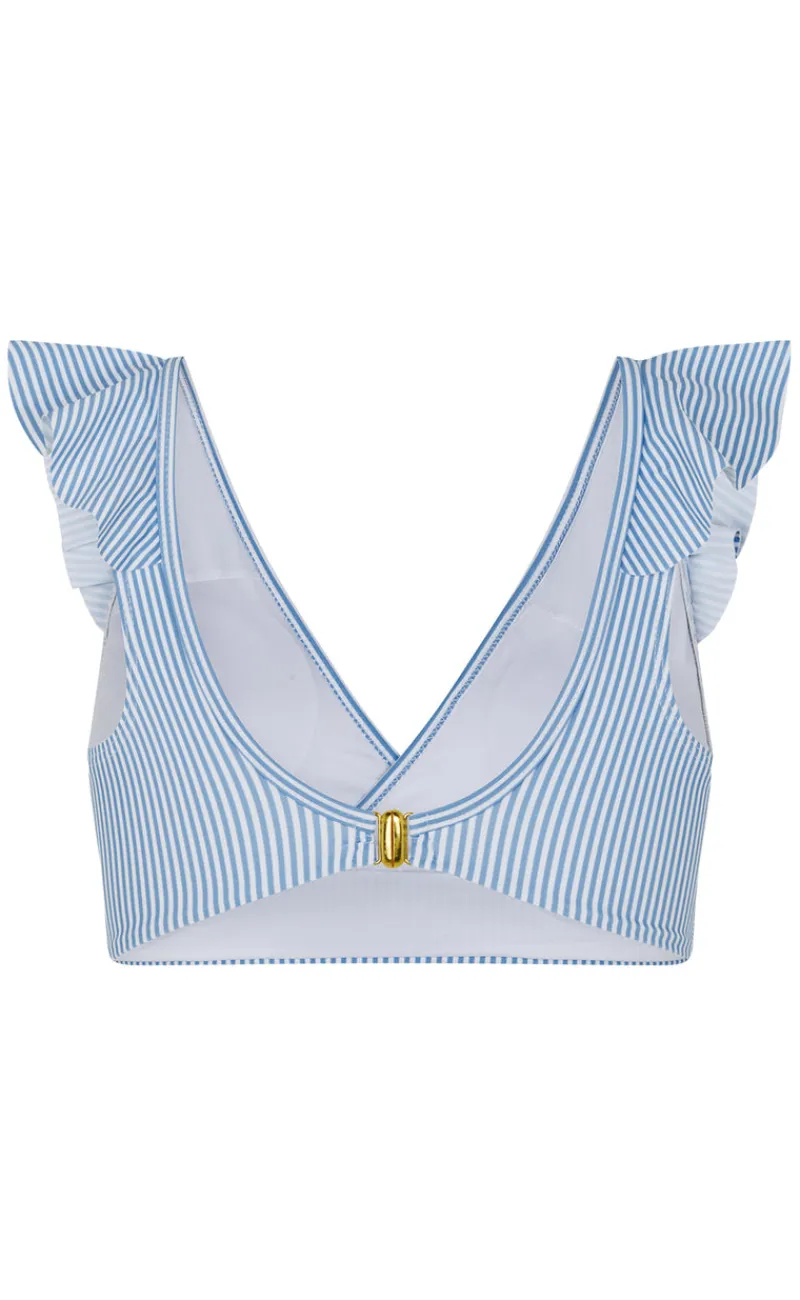 Blåstribet bikini overdel med de fineste flæse detaljer og perfekt pasform