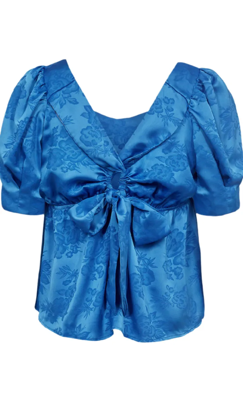 Sød og feminin bluse fra Moves i et blåt print.