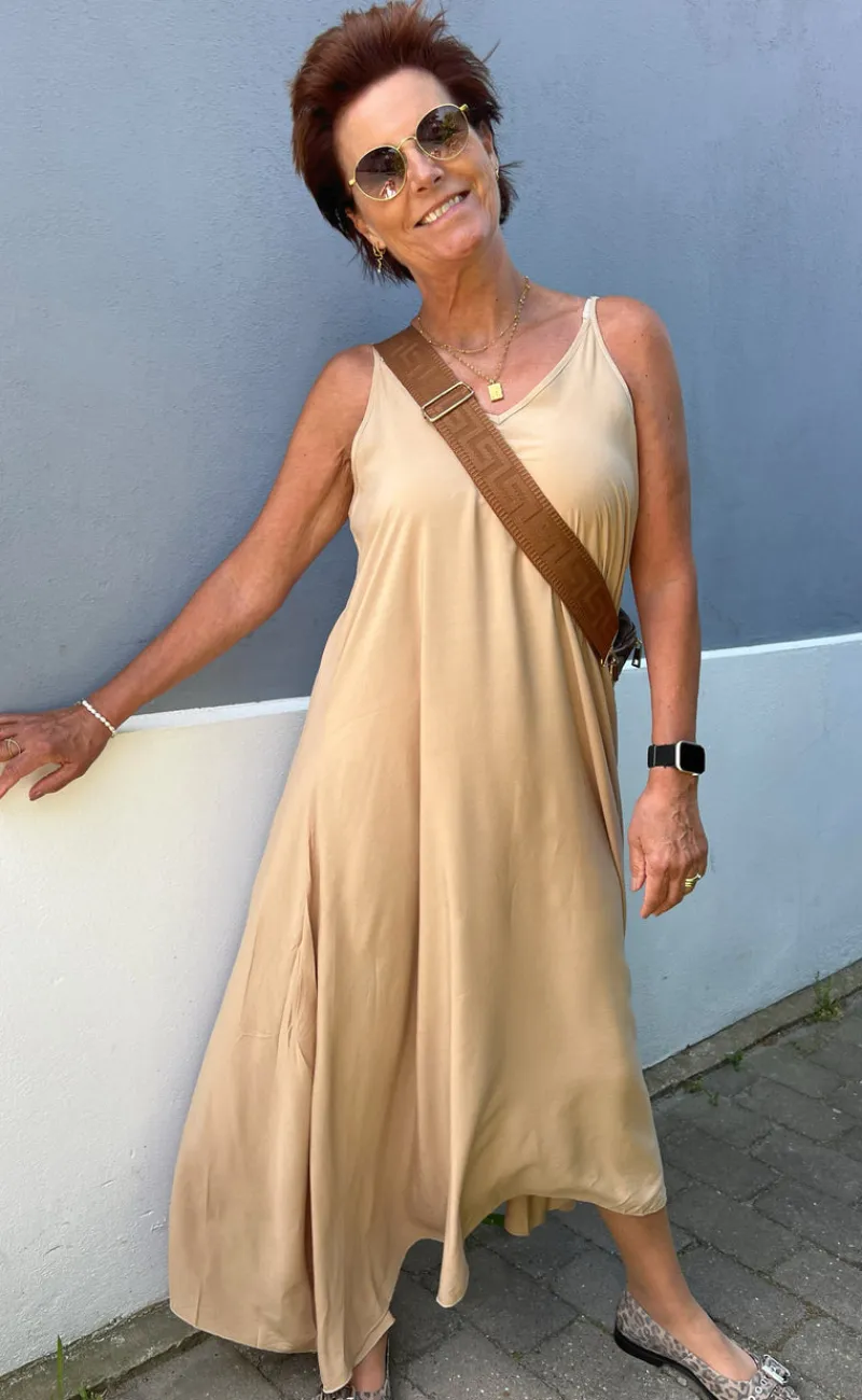 Flot kjole fra INA Copenhagen i camel.