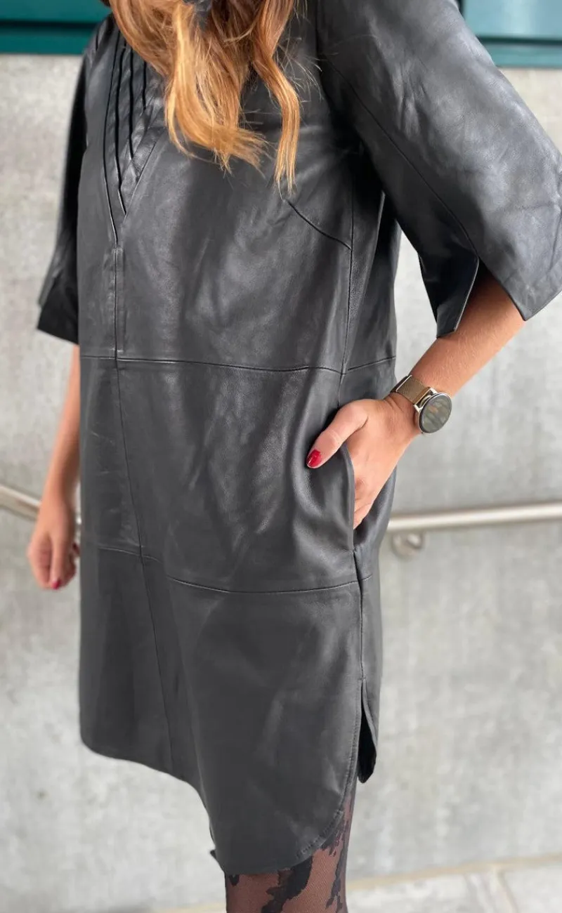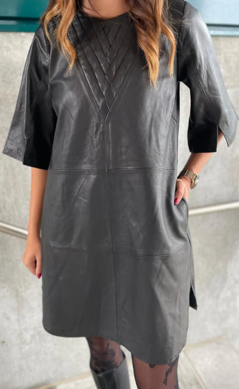 Fin kjole fra Gossia i sort læder.