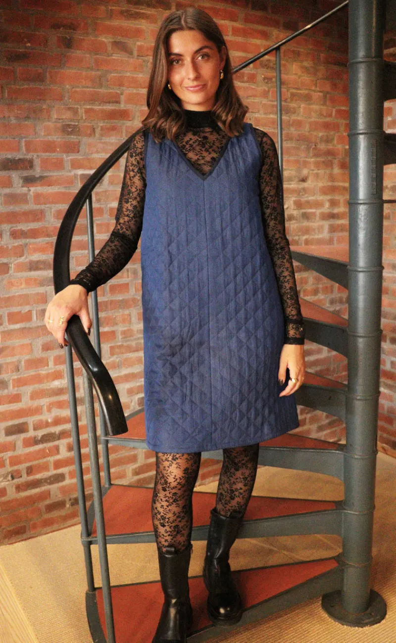 Fot denim spencer kjole fra Liberte i mørke blå.