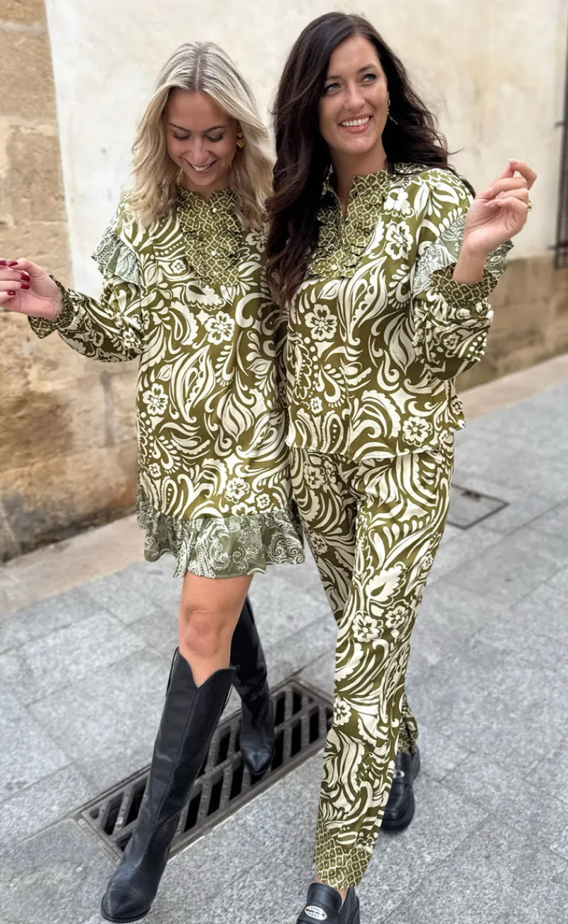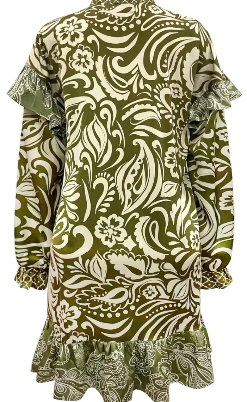 Kjolen går til lige over knæet, og har nogle flotte flæse detajler.