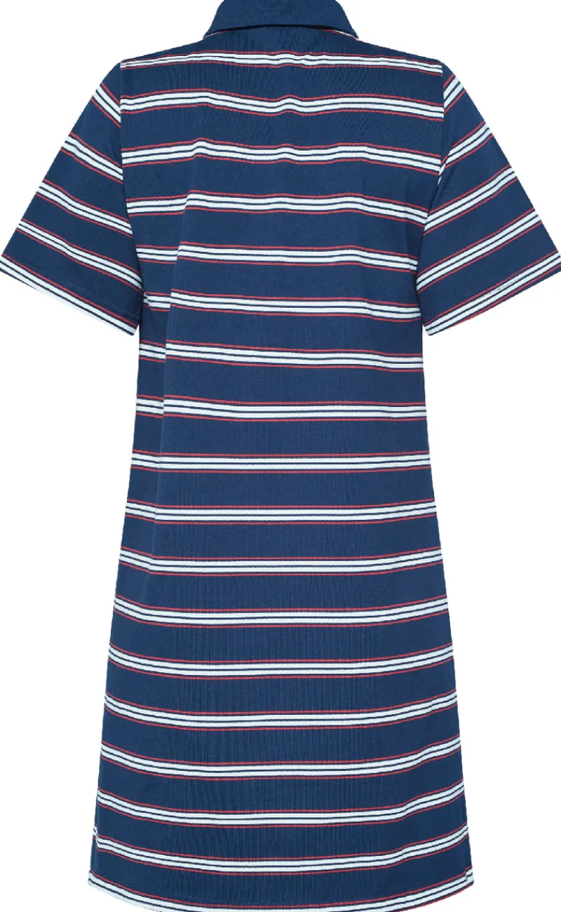 Stribet, polo kjole fra Love & Divine i mørkeblå.
