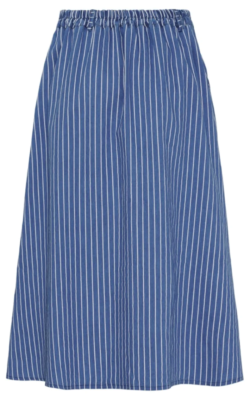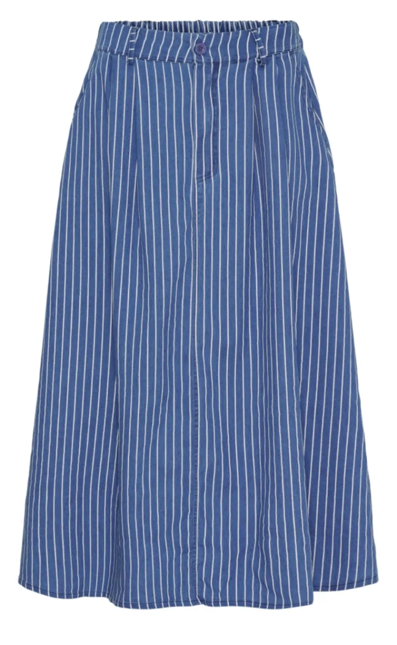 Pæn nederdel med blå og hvide striber.