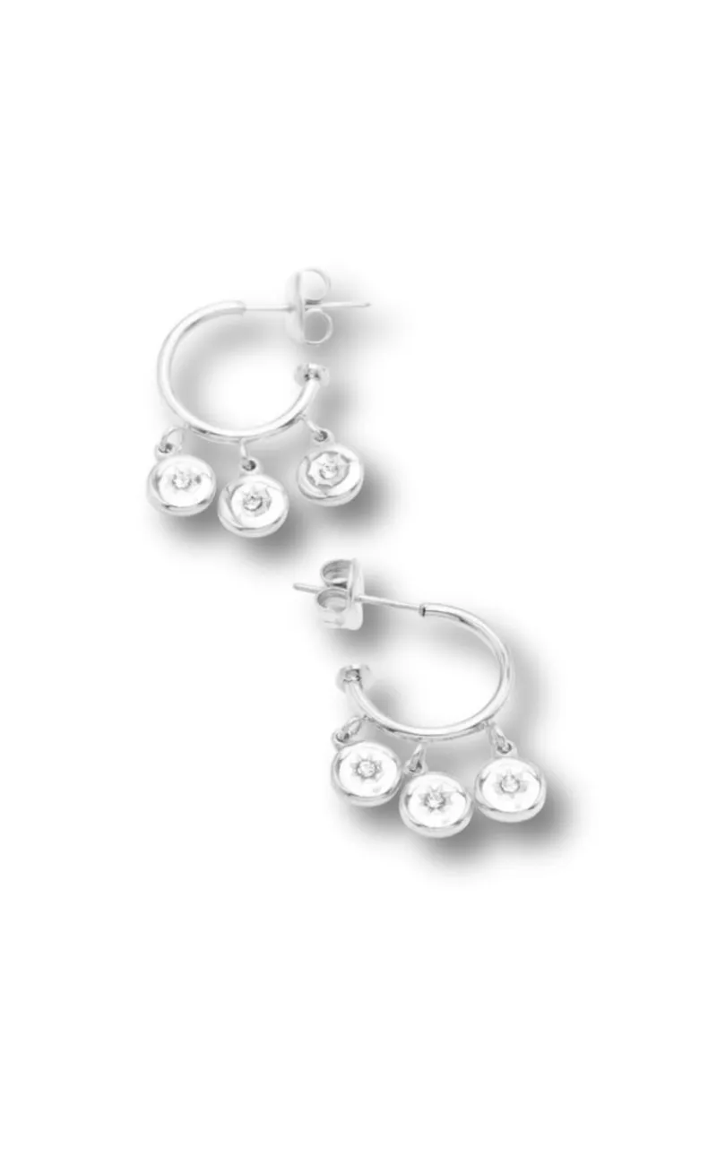 Smukke hoops fra Smykkeli Copenhagen i sølv med 3 runde vedhæng med en indgraveret stjerne og en lille zirconia sten.