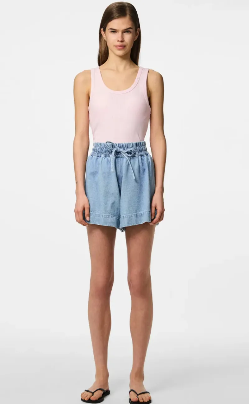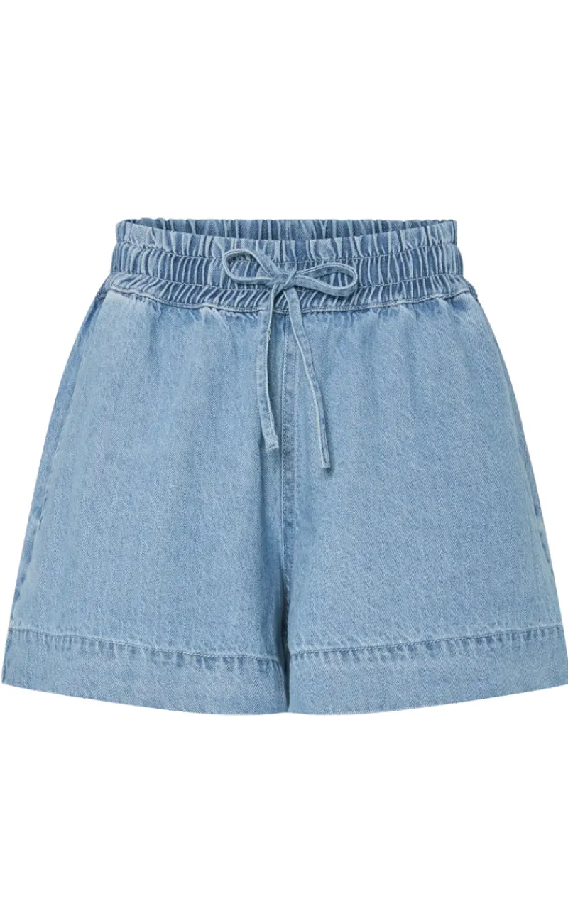 Shortsene er i lys denim og har elastik i taljen.