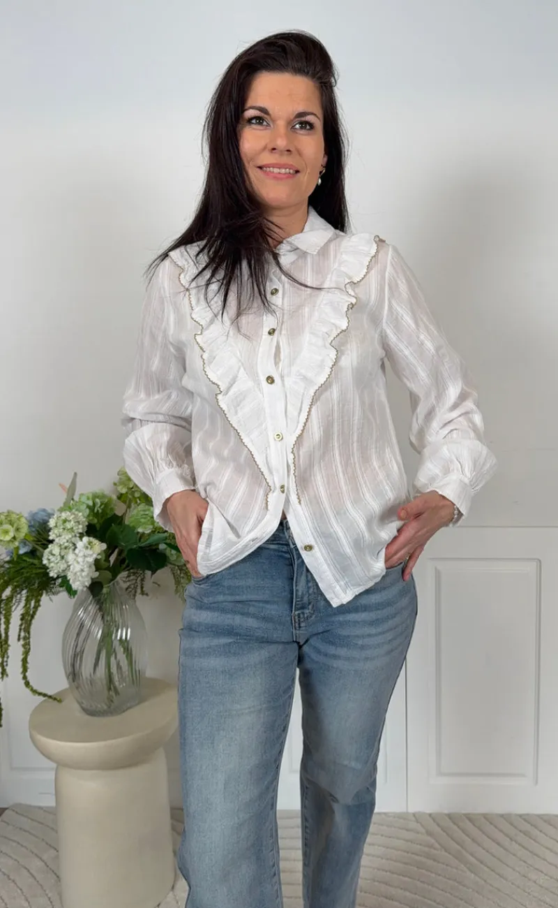 Hvid skjorte fra Marta Du Chateau med et feminint udtryk.