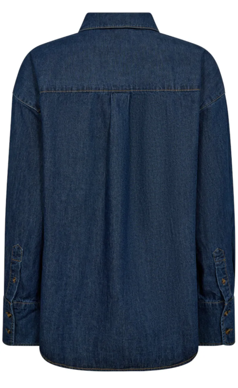 Denim skjorte fra Freequent i en medium blå denim farve.