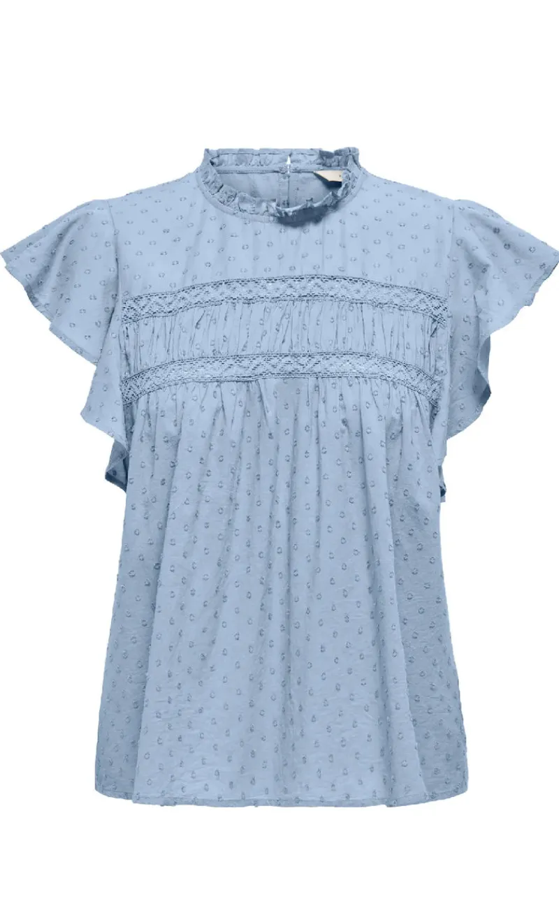 Sød og feminin top fra ONLY i blå, med flæsedetaljer.