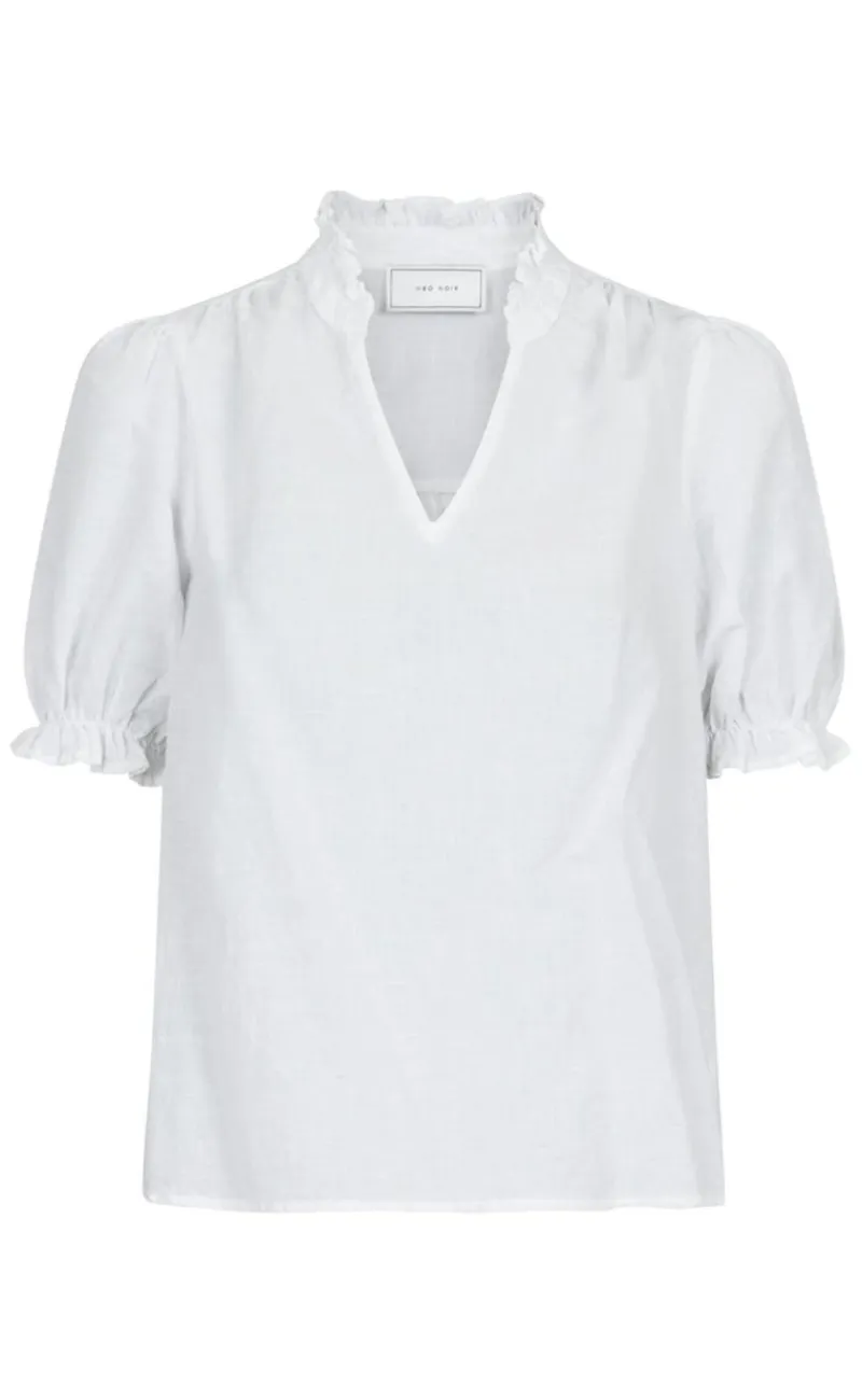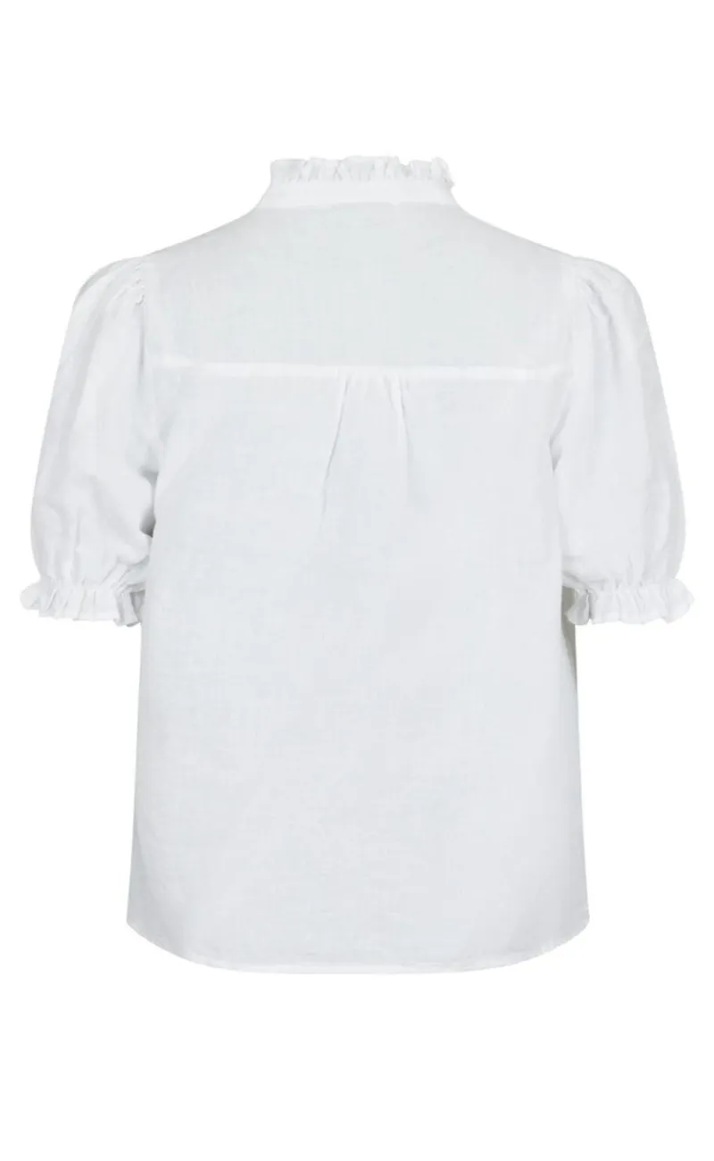 Sød bluse med fine flæse detaljer ved kraven og skulderen.