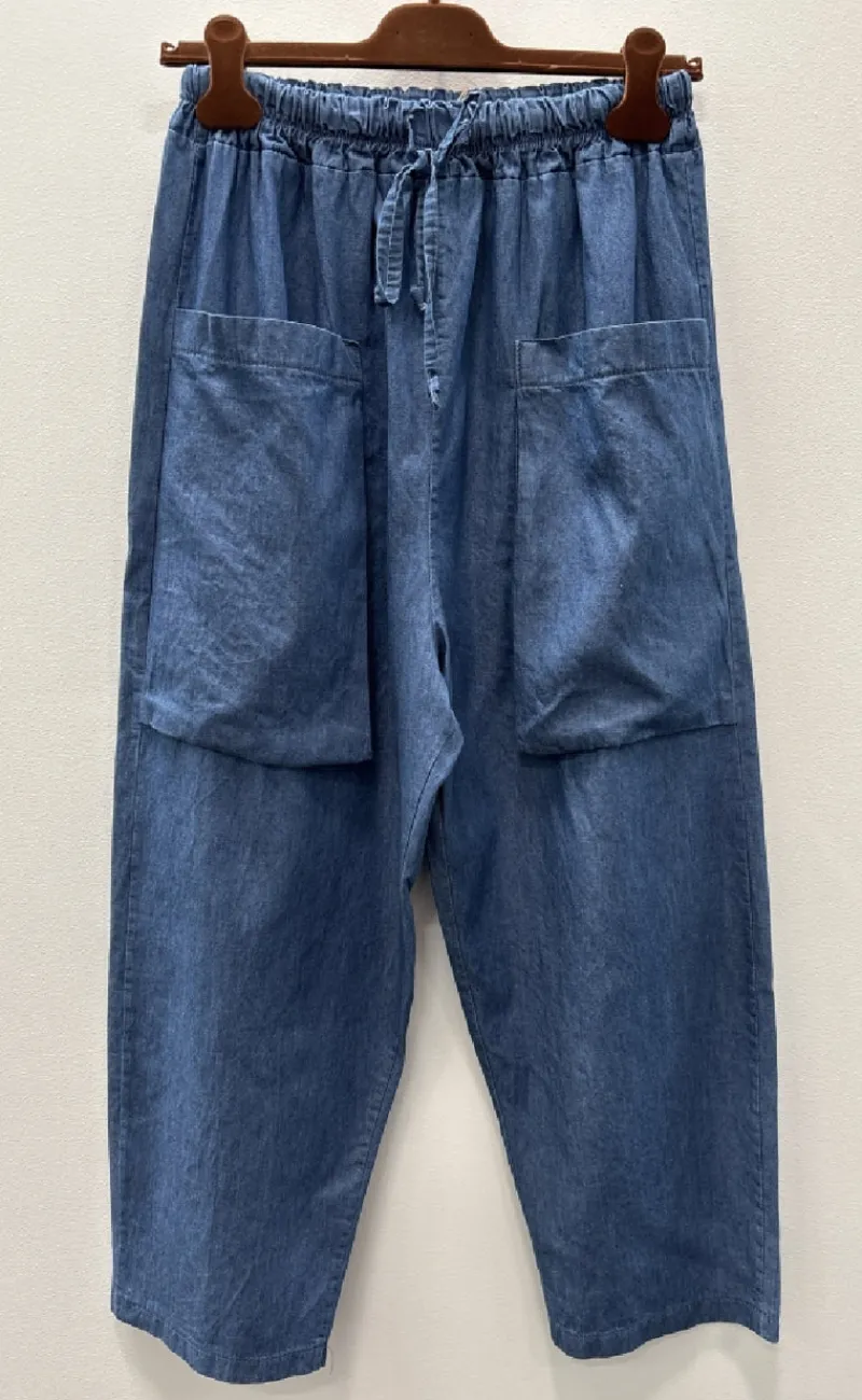 Klassiske bukser fra Marta Du Chateau i blå, med bindebånd i taljen.