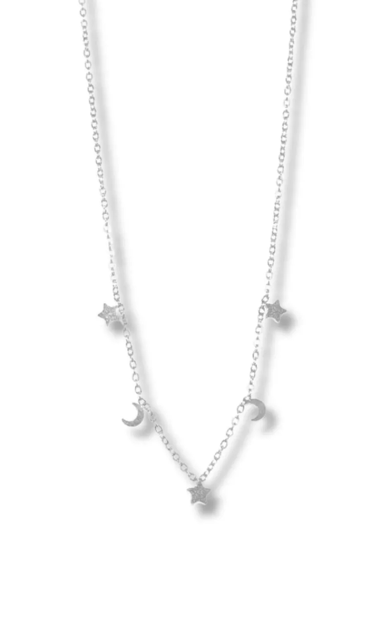 Fin halskæde fra Smykkeli Copenhagen i sølv med stjerner og måner. Halskæden har et enkelt og stilrent look, der pifter ethvert outfit op.