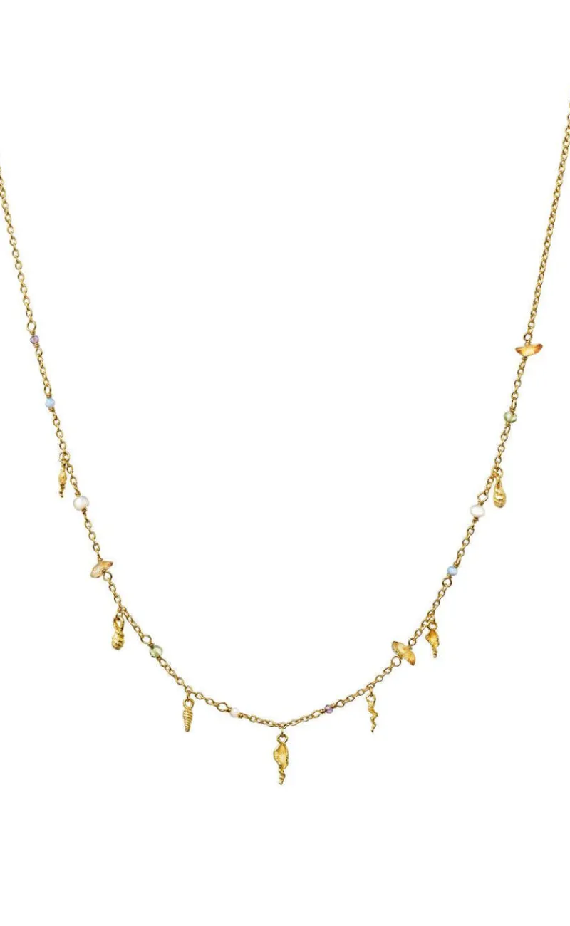 Super flot halskæde fra Maanesten i guld, med små vedhæng.
