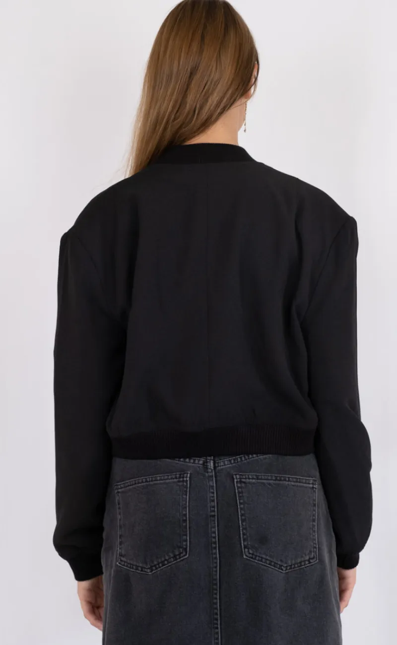 Jakken har elastik i taljen, ærmerne samt ved halsen.