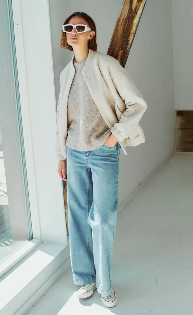 Online Sweater – Liana – Cream/Cobalt Blue Striktrøjer & Sweat