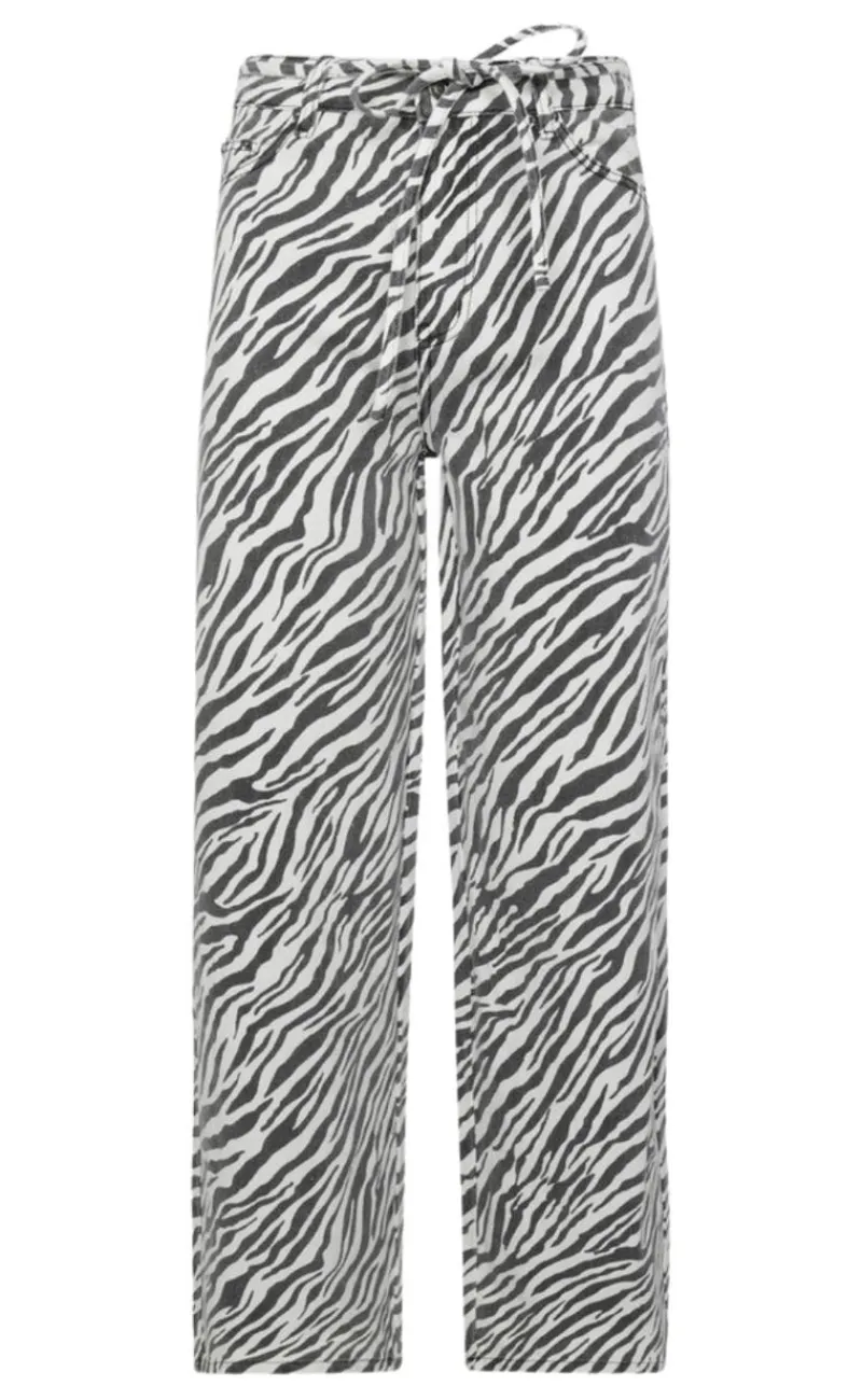 Disse bukser har lige ben og bindebånd i tajlen.