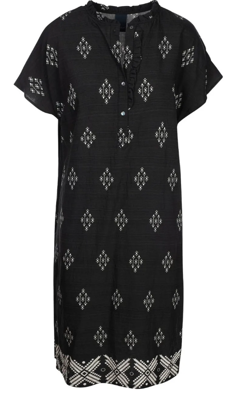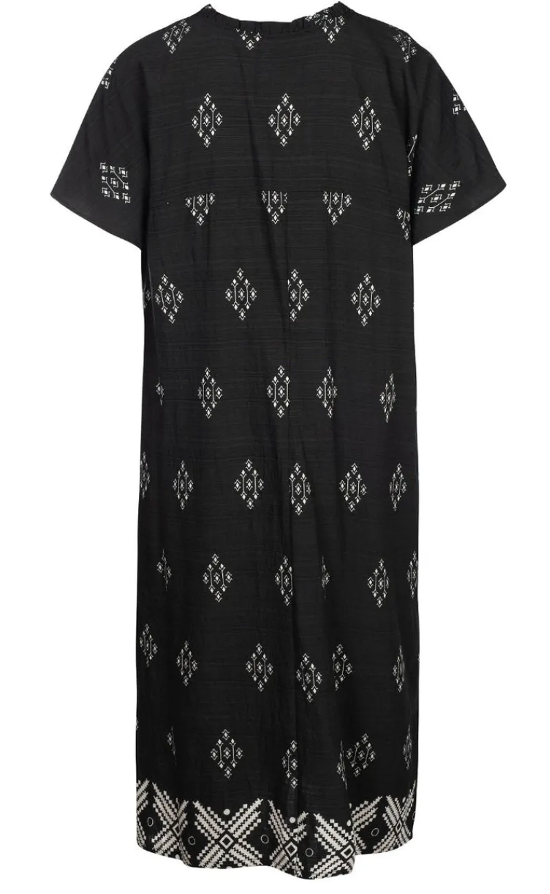 Smuk mønstret kjole i sort fra Luxzuz. Let pasform, fine flæse-detaljer og et feminint look.