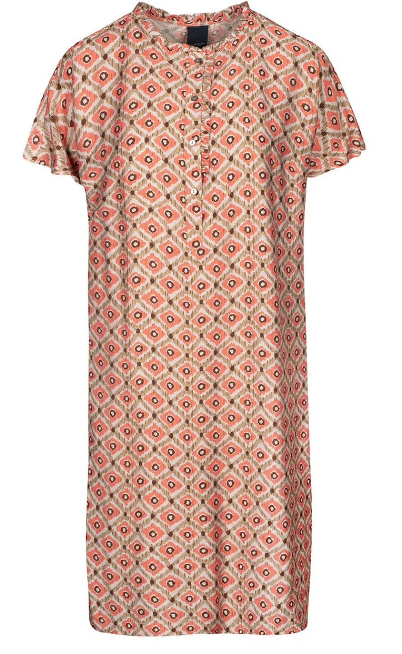 Smuk mønstret kjole fra Luxzuz. Let pasform, fine flæse-detaljer og et feminint look.