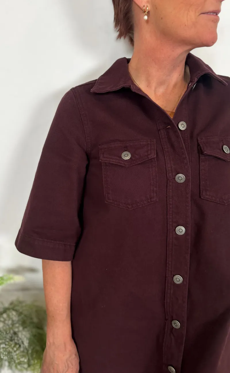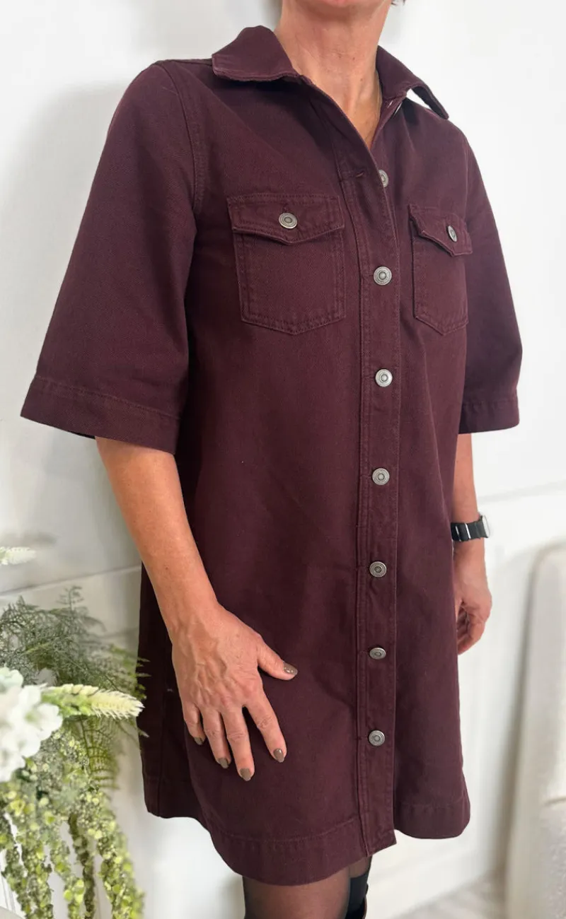 Flot denim kjole fra Global Funk i bordeaux rød.