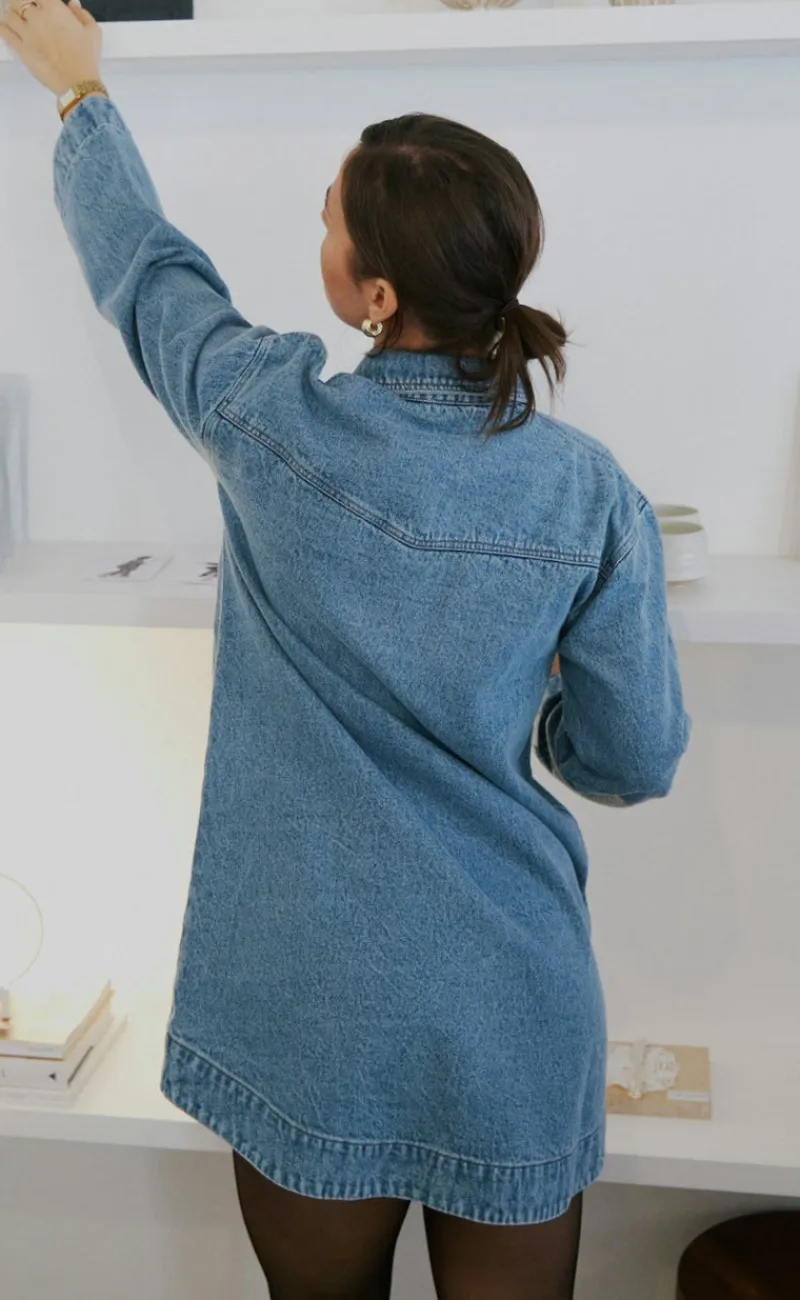 Fin denim kjole fra Neo Noir i en blå farve.