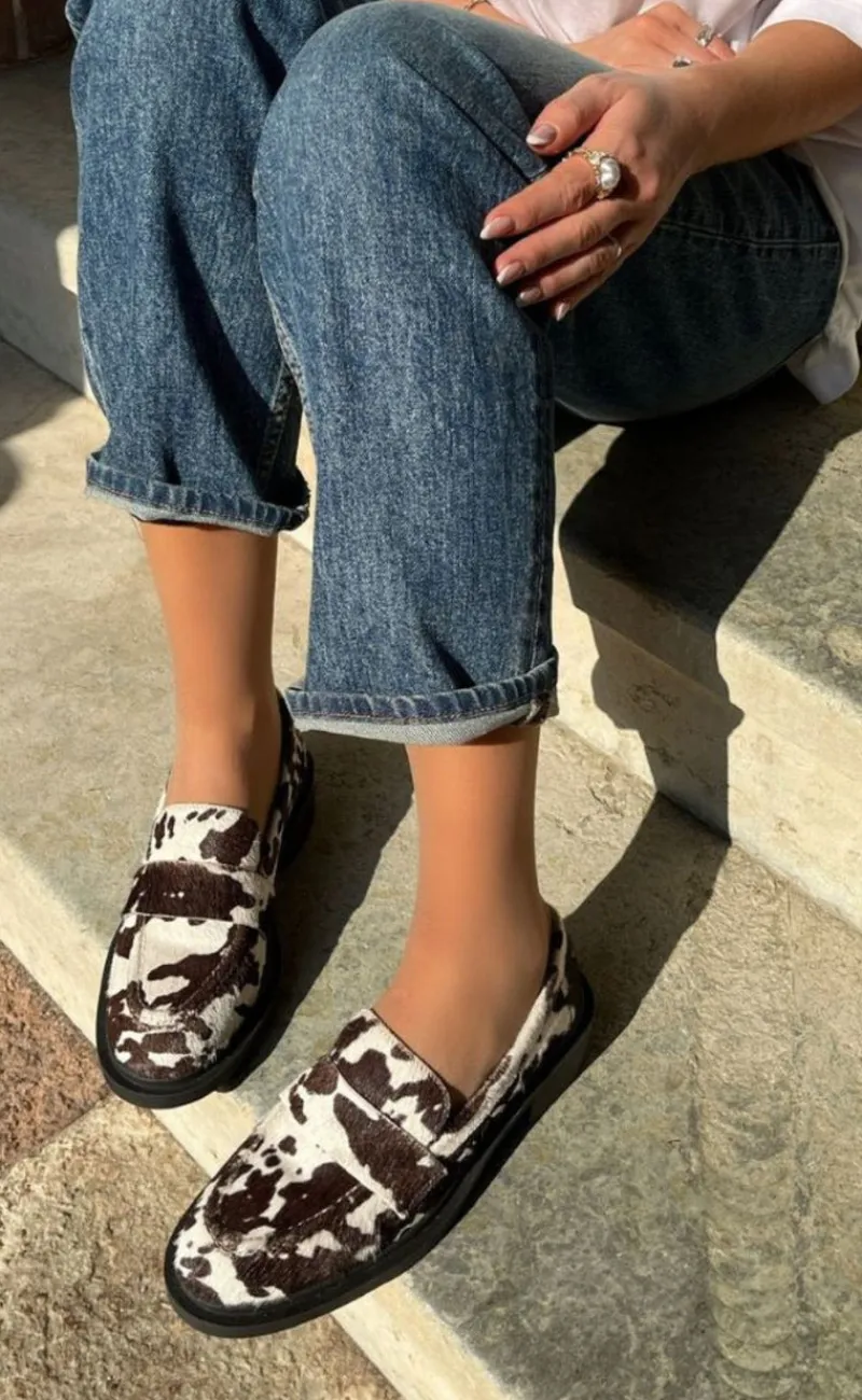 Flotte loafers i eksklusivt hairon-læder med ko-print.
