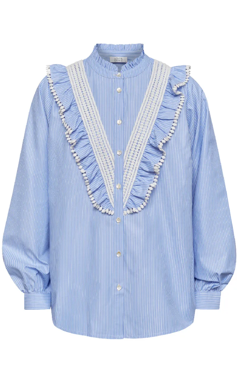 Feminin skjorte fra Love & Divine i blå og hvide nuancer.