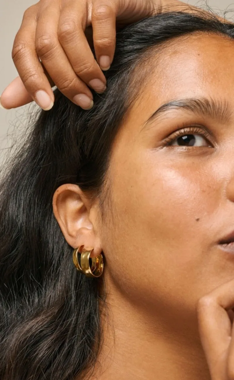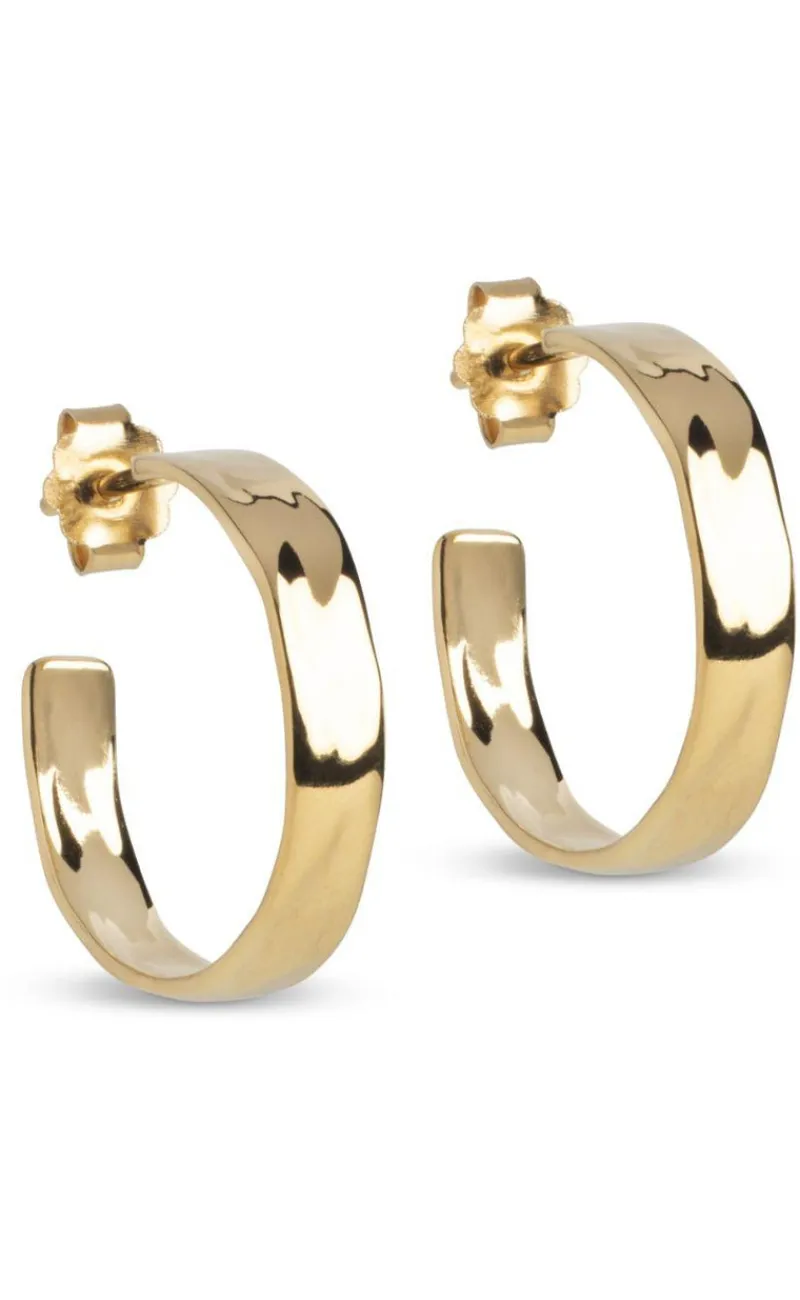 Sandra hoops narrow fra ENAMEL Copenhagen er klassiske hoops med en unik bølgende overflade, der giver et eksklusivt udtryk. De kan nemt stackes med andre hoops, men er særligt flotte sammen med Sandra wide hoops for et stilfuldt og feminint look. Trods deres markante design er de lette at bære.