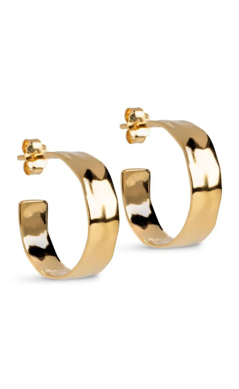 Smukke øreringe, med deres unikke bølgende overflade tilføjer de elegance til dit look. De kan nemt stackes med andre hoops, men kombineres perfekt med Sandra narrow hoops for et eksklusivt og feminint udtryk. Trods deres iøjnefaldende design er de lette i vægt.