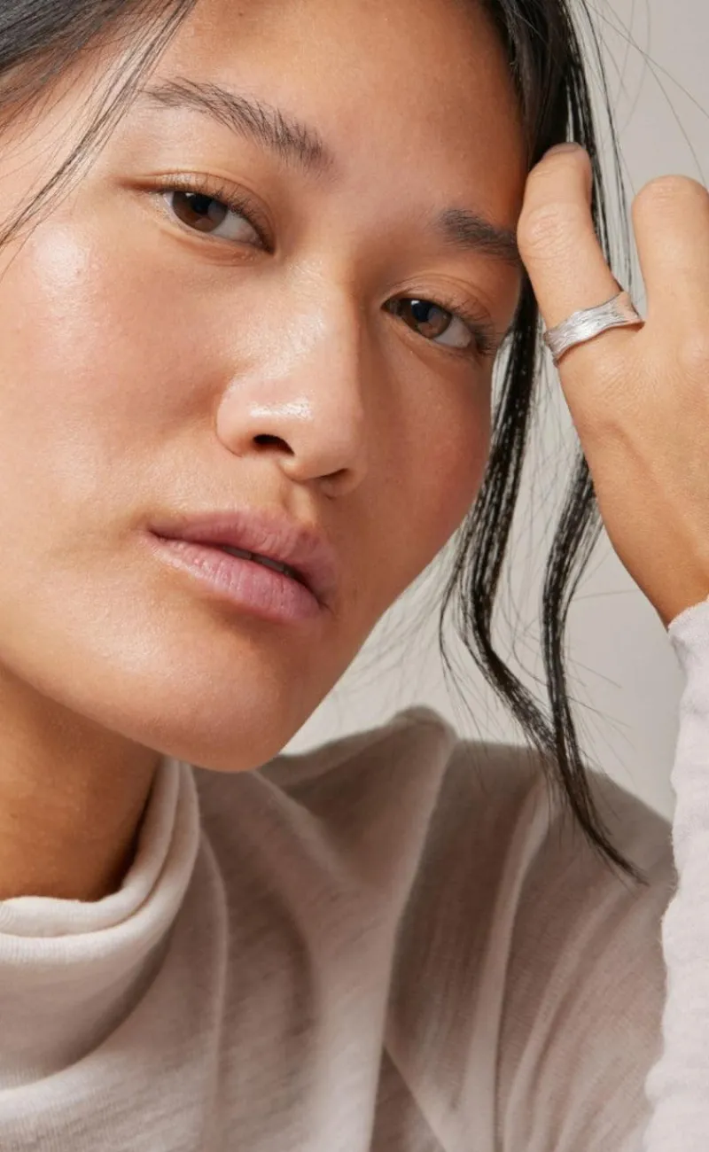 Flot ring fra Enamel Copenhagen i sølv med bølge-effekt.