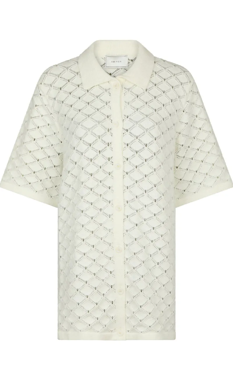 Hæklet strik skjorte fra Neo Noir i off white.